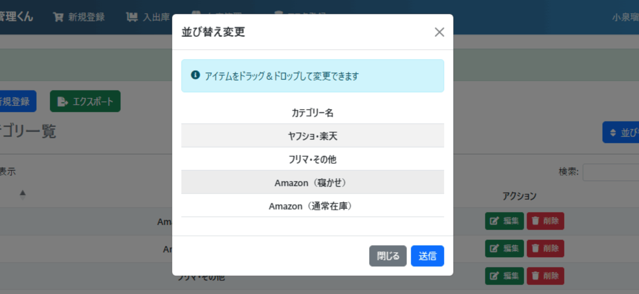 カテゴリや場所が増えてくると、新規登録や検索時にプルダウンから探すのが大変になります。そんな時に便利なのが並び替え機能です。
