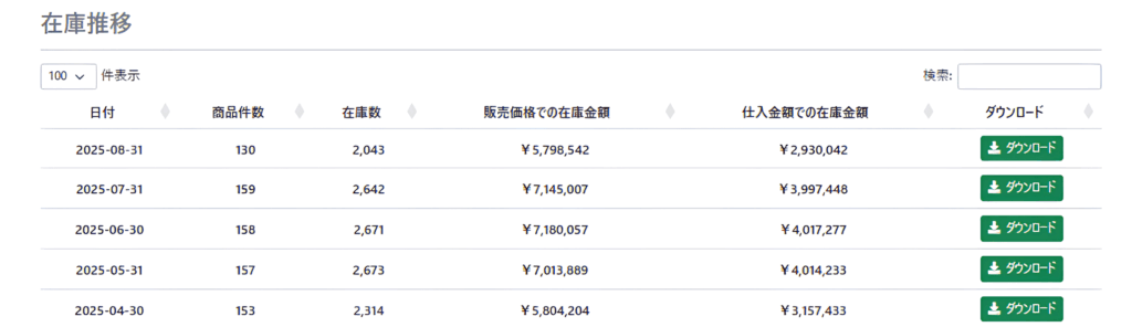過去の在庫金額や推移をあとから確認するのも簡単です。